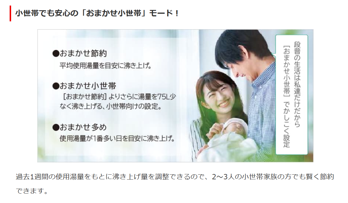 小世帯でも安心の「おまかせ小世帯」モード!