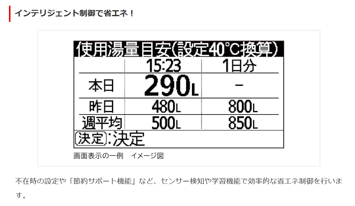 過去1週間の使用湯量をもとに沸き上げ量を調整できるので、2~3人の小世帯家族の方でも賢く節約できます。