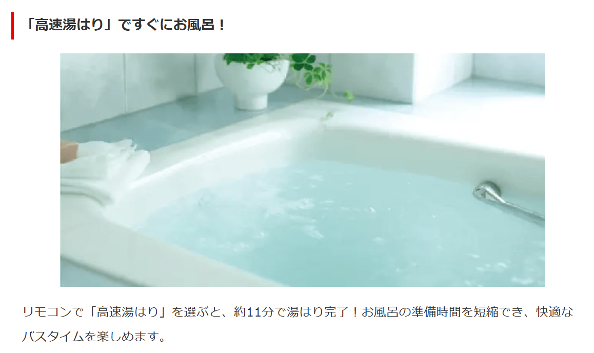 「高速湯はり」ですぐにお風呂!