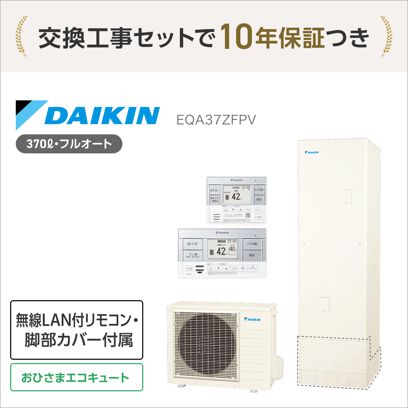 無料10年保証付 ダイキン EQA37ZFPV おひさまエコキュート フルオート 370L 3~5人用 無線LANリモコン・脚部カバー付属 BRC083H1 KKC022E4 <処分費込>【エコキュート+交換工事セットがオトク】