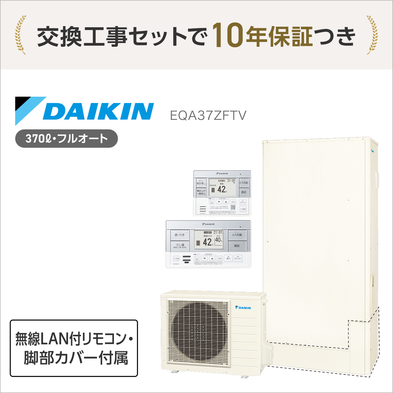 無料10年保証付 ダイキン EQA37ZFTV エコキュート フルオート 370L 3~5人用 無線LANリモコン・脚部カバー付属 BRC083H1 KKC052B4 <処分費込>【エコキュート+交換工事セットがオトク】