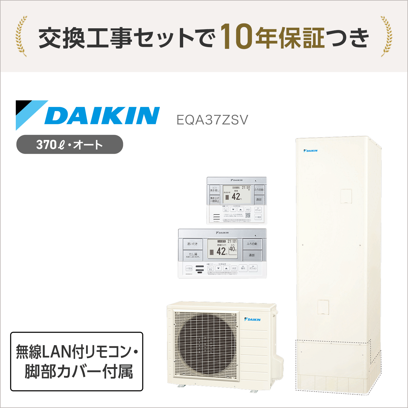 無料10年保証付 ダイキン EQA37ZSV エコキュート オート 370L 3~5人用 無線LANリモコン・脚部カバー付属 BRC083H2 KKC022E4 <処分費込>【エコキュート+交換工事セットがオトク】
