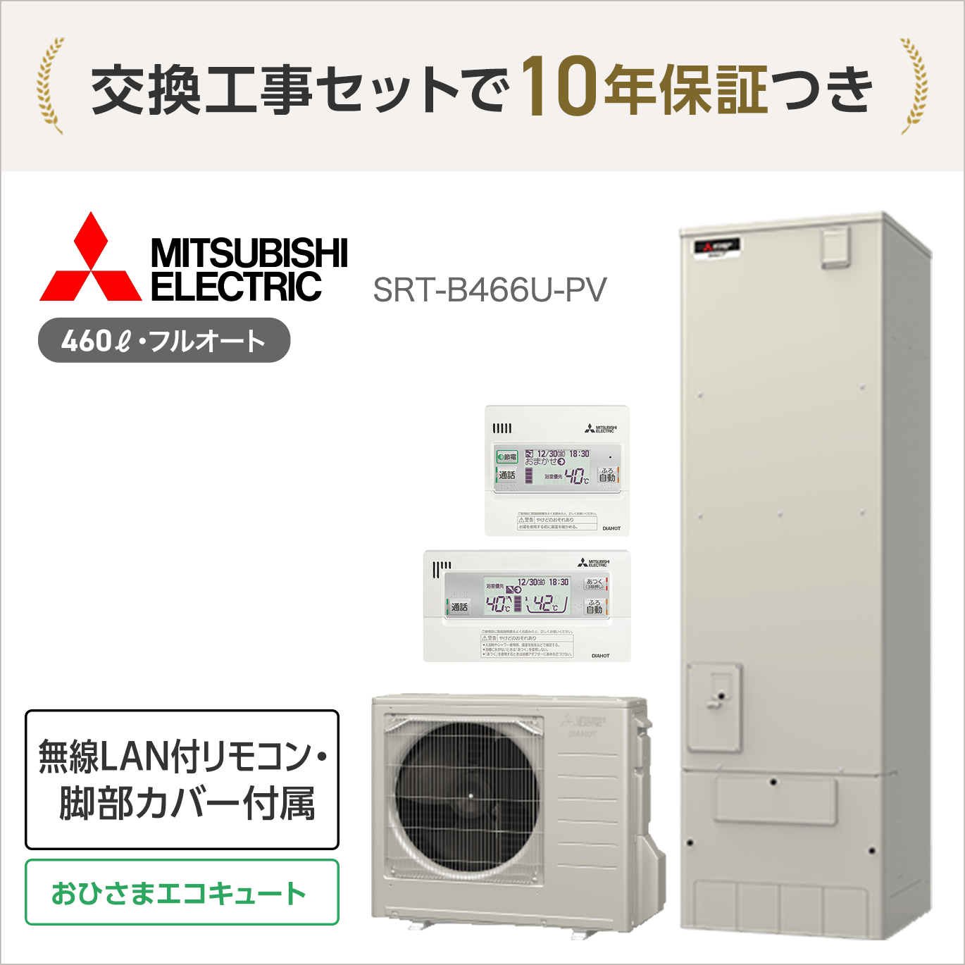 無料10年保証付 三菱 SRT-B466U-PV おひさまエコキュート フルオート460L 4~5人用リモコン・脚部カバー付属 RMCB-D6SE-T-PV GT-M460W<処分費込>【エコキュート+交換工事セットがオトク】