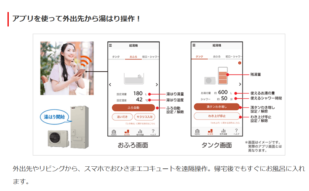 外出先やリビングから、スマホでおひさまエコキュートを遠隔操作。帰宅後でもすぐにお風呂に入れます。