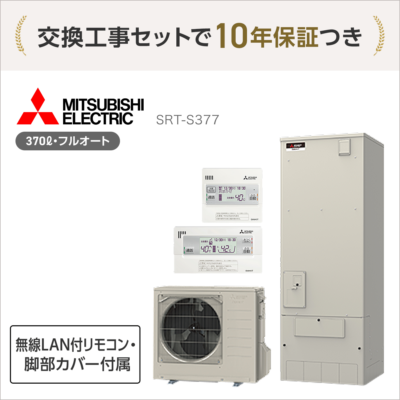 無料10年保証付 SRT-S377 エコキュート フルオート 370L 3~4人用 リモコン・脚部カバー付属 RMCB-F7SE GT-M460W <処分費込>【エコキュート+交換工事セットがオトク】