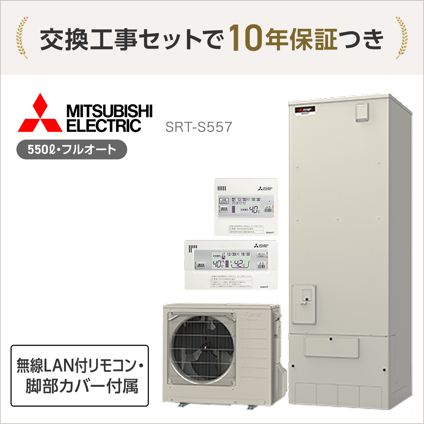 無料10年保証付 SRT-S557 エコキュート フルオート 550L 5~7人用 リモコン・脚部カバー付属 RMCB-F7SE GT-M550W <処分費込>【エコキュート+交換工事セットがオトク】